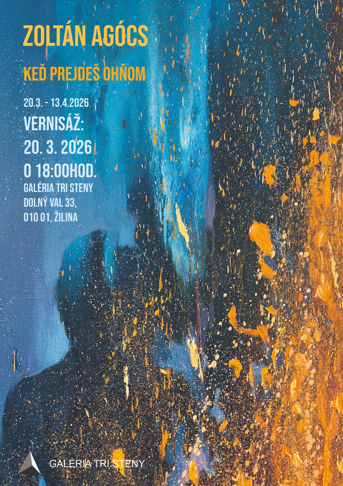 pozývame Vás na výstavu obrazov, kde predstavíme žilinského výtvarníka Zoltána Agócsa, ktorý nás prevedie svojou najnovšou tvorbou na výstave Keď prejdeš ohňom.Vernisáž sa uskutoční, v piatok 20. 3. 2026 o 18:00 v Galérii Tri steny (Dolný Val 33, 010 01 Žilina).