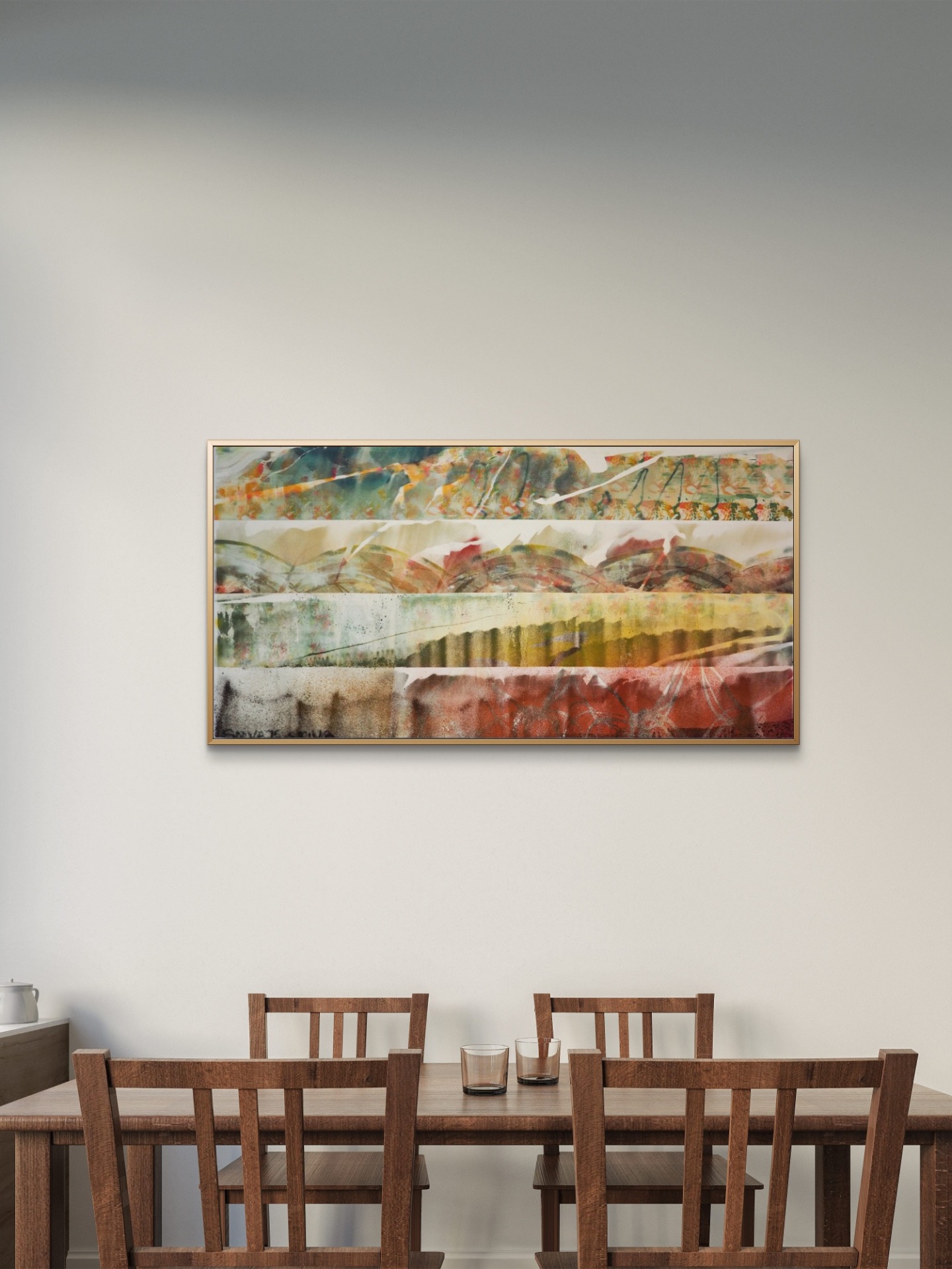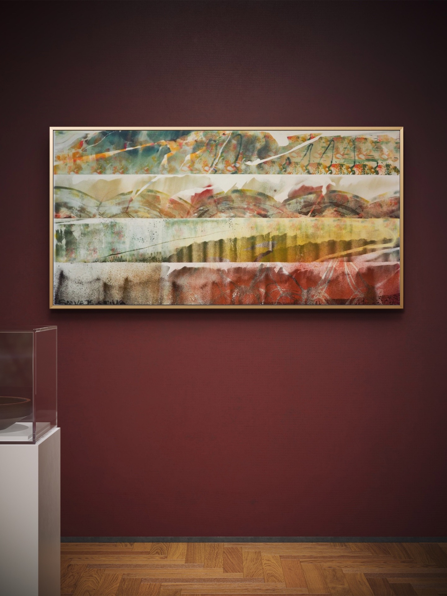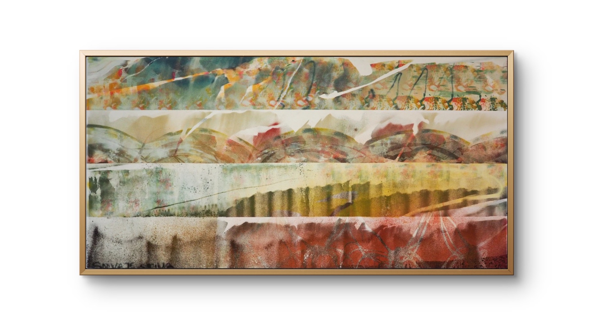 materiál: plátno je natiahnuté na napínacej lište (blind ráme) hrúbky 2 cm