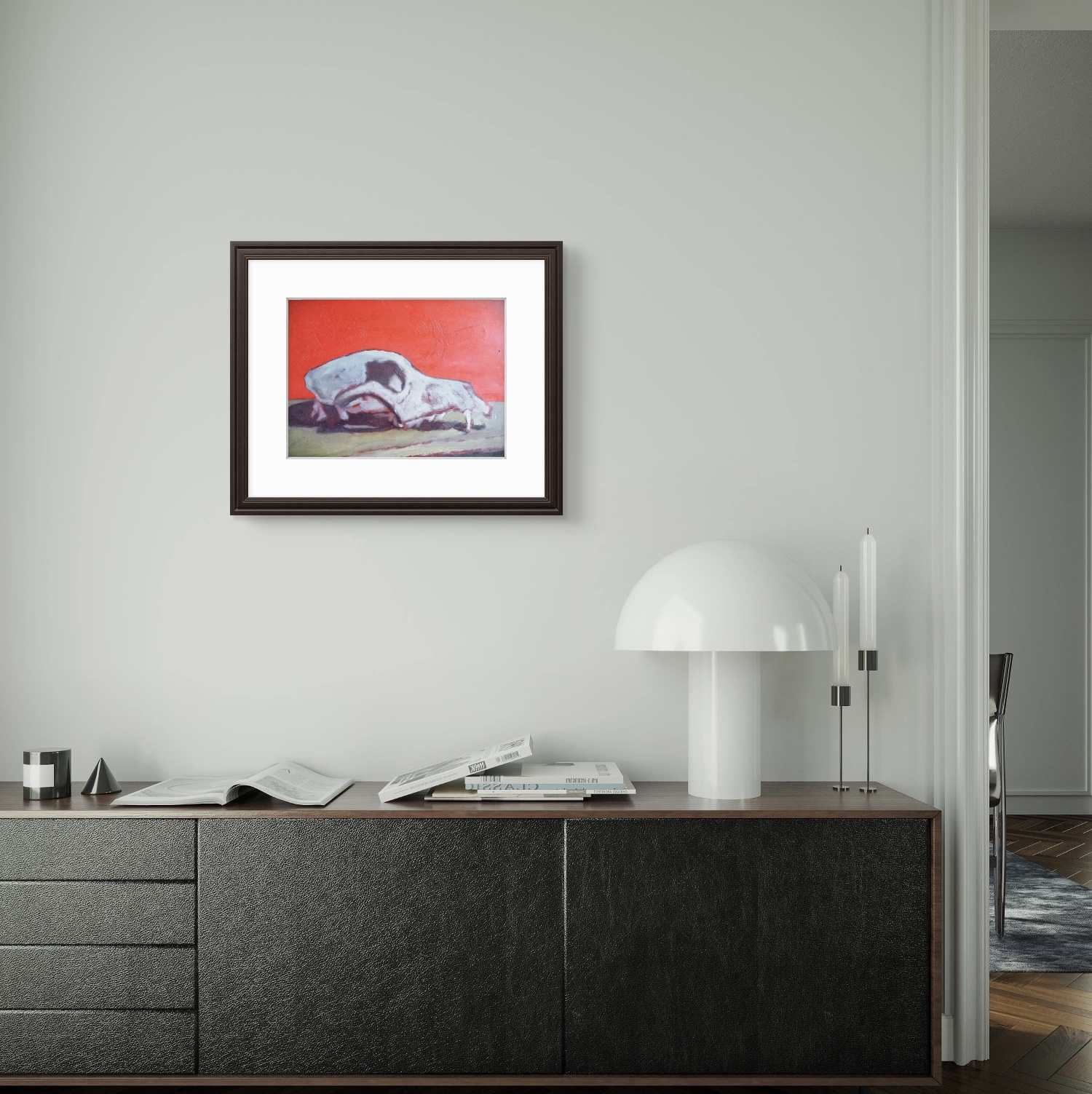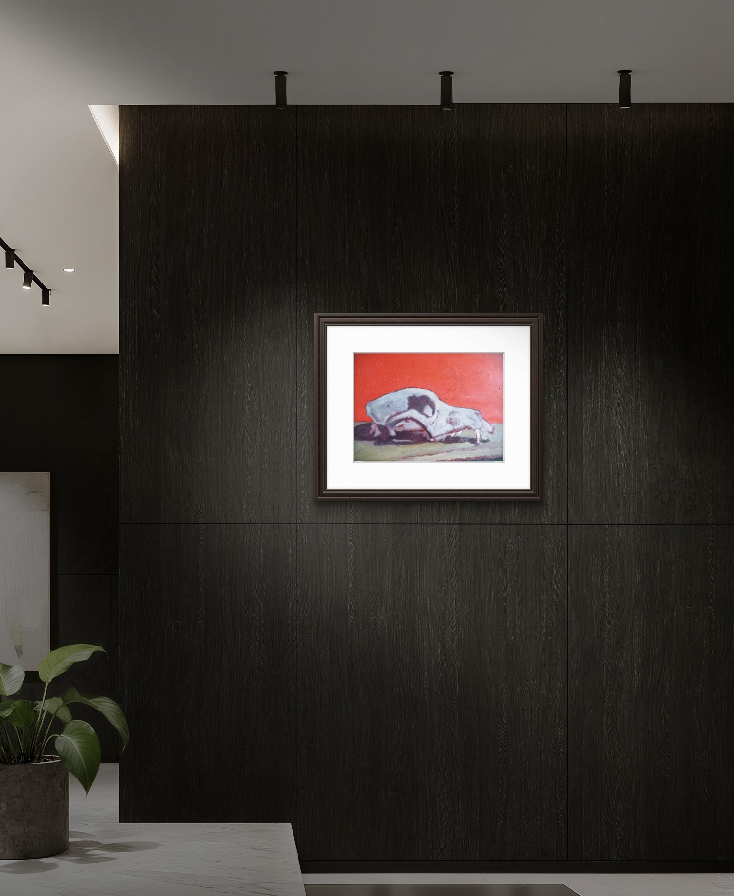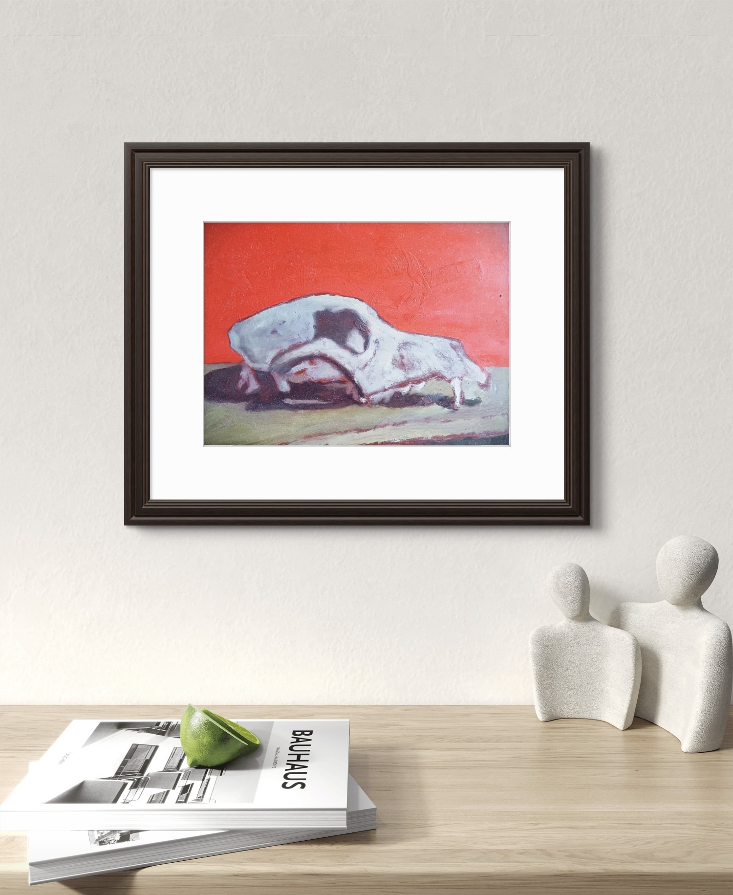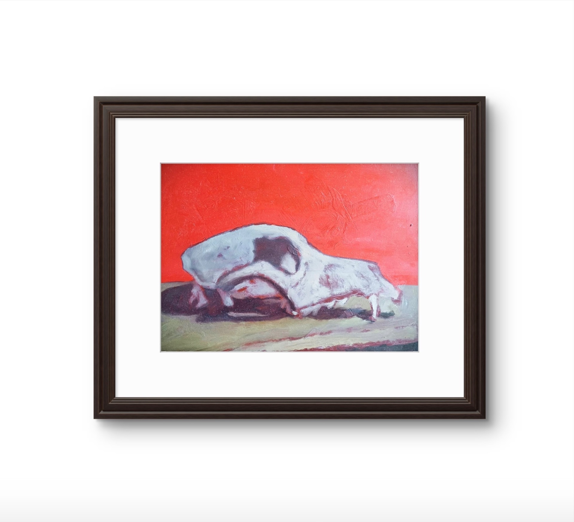 Evka Török - Štúdia lebky zvieraťa - vlk - olejomaľba na dreve na kriedovom podklade - 40 x 30cm