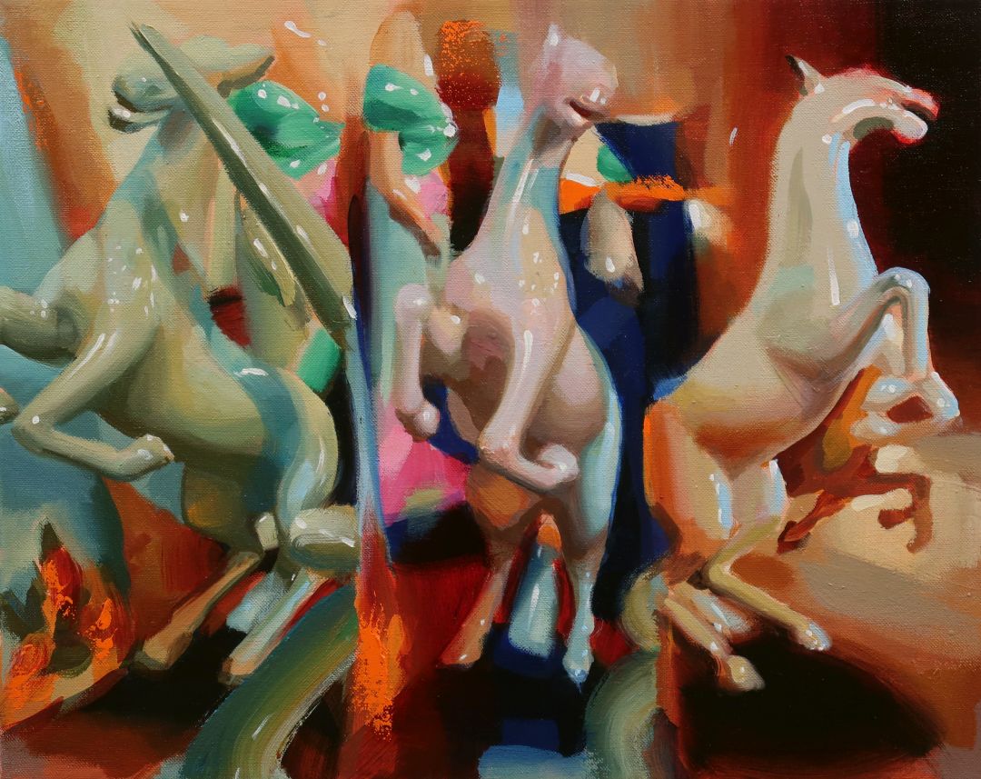 "Moje obrazy sú satirická propaganda ľudstva, ktoré odmieta akékoľvek pochybnosti o zmysle a cieli závodu."— Juraj ĎurišJuraj Ďuriš (1992, Nitra; žije v Prahe) je absolventom Fakulty výtvarných umení v Brne a magisterského štúdia na Vysokej škole výtvarných umení v Bratislave v ateliéri Ivana Csudaia.V roku 2023 absolvoval prestížnu stáž na Cité internationale des arts v Paríži a jeho veľkoformátové murály nájdeme naprieč Európou i v Maroku. Vo svojich dielach spája svet športu a moreplavby – cyklistov, hokejistov či pilotov F1 zobrazuje spolu s monumentálnymi tankermi a loďami, ktoré sa stávajú symbolmi moci, súťaženia i ľudskej márnivosti. S iróniou využíva vizuálny jazyk propagandy a reklamy, aby odhalil, kam až siaha naša túžba po víťazstve a technickej dokonalosti.